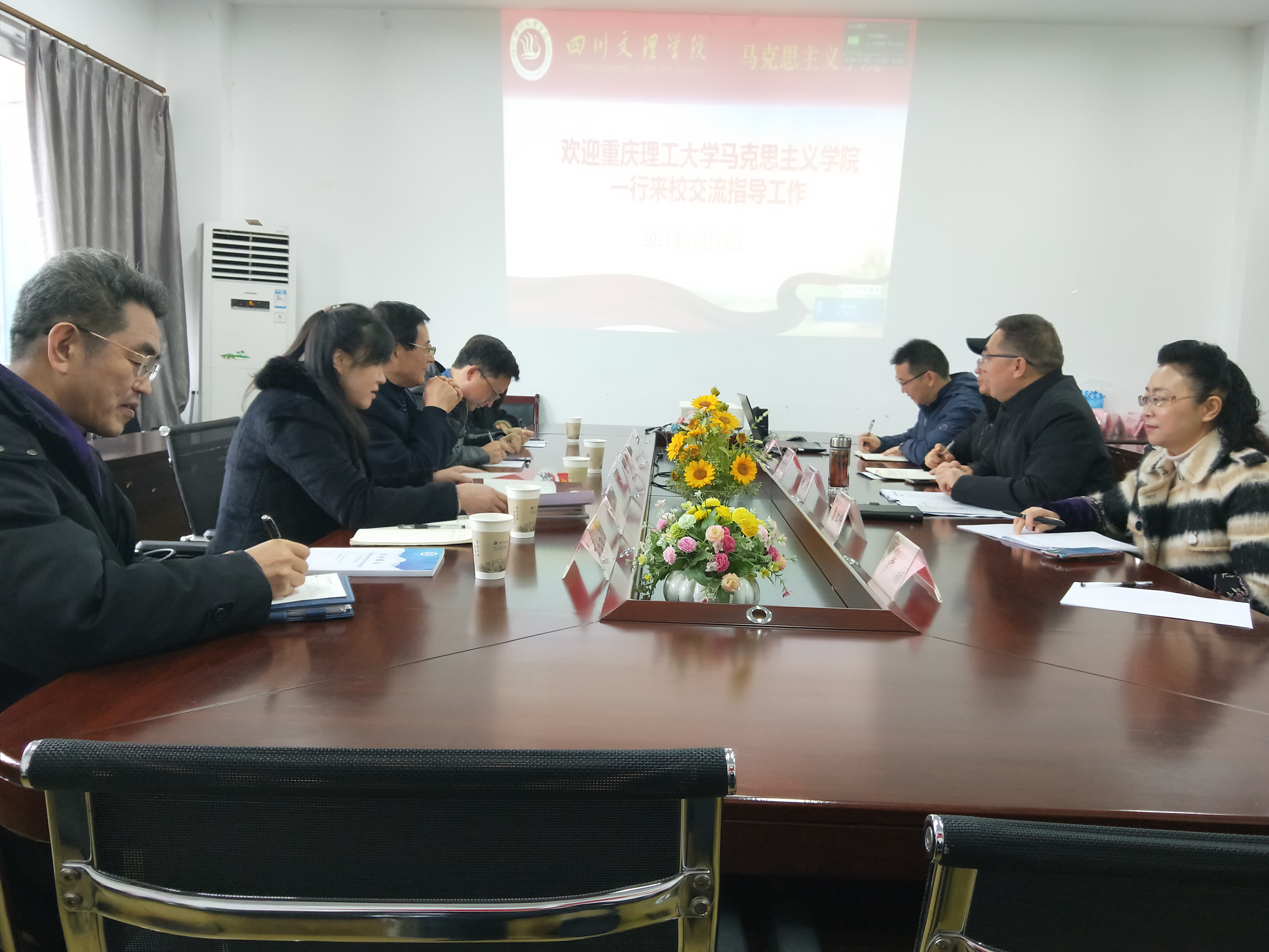 2021年12月13日上午,重庆理工大学sunbet申搏官方网站院长徐茂华、党委书记黄旭、副院长谭莉莉、办公室副主任张洁琳以及王兴国老师一行5人来申搏官网sunbet申搏官方网站开展交流指导,sunbet申搏官方网站党总支书记刘春辉、政法学院院长刘长江、党政办主任常楠、马克思主义基本原理教研室主任曹红梅、形势与政策教研室主任梁云参加了座谈会。