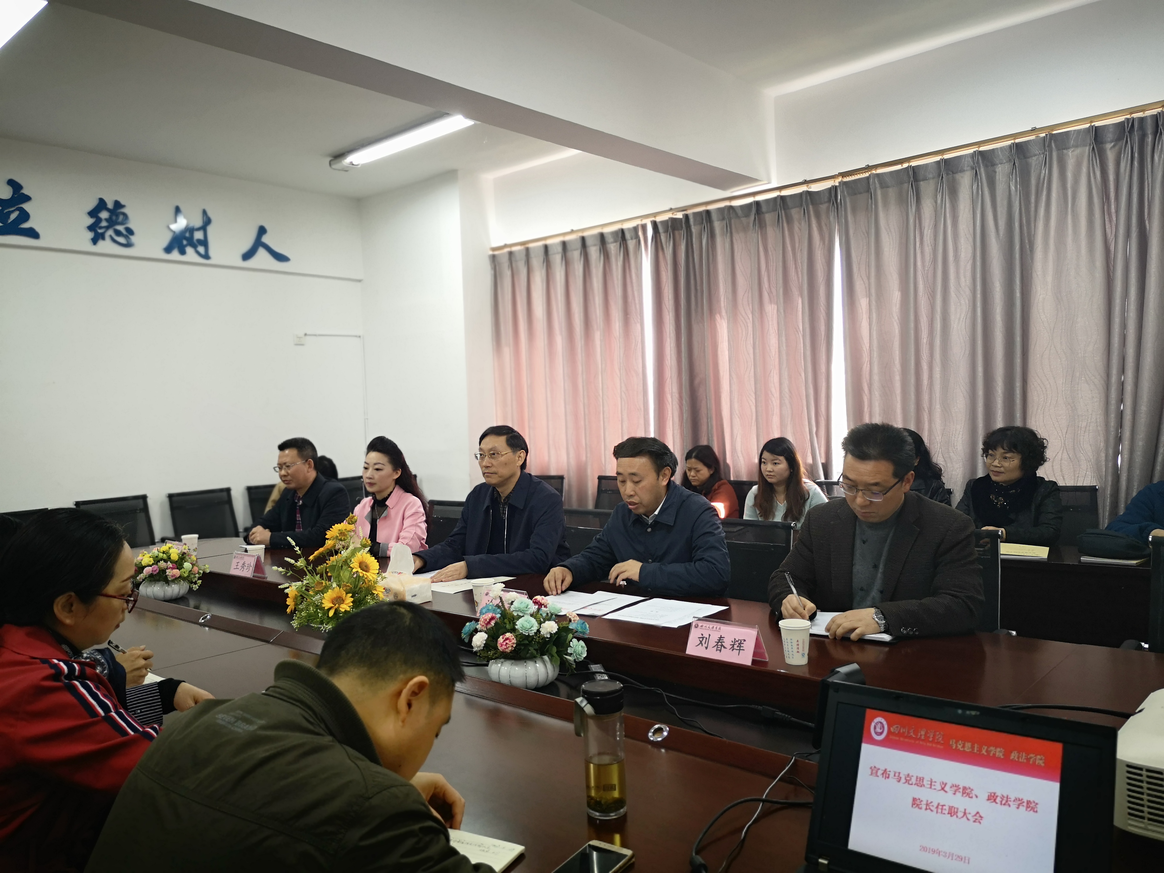 3月29日上午,学院在一教楼611召开全院教职工大会。学校党委书记王成端、党委常委、党委组织部长涂德祥、党委委员、原院长王秀珍、党总支书记刘春辉、现任院长刘长江以及学院全体教职工参加会议。党委组织部长涂德祥主持会议并宣读任命文件。