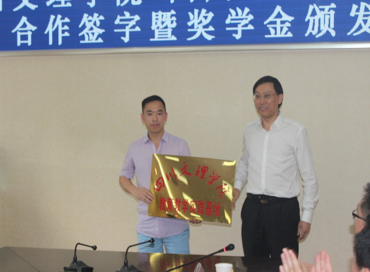 接下来,邓杰处长和田金陇主任分别代表双方签署校企合作协议。王成端书记代表学校向四川果然律师事务所授“四川文理学院教育教学实践基地”牌匾。然后,邓杰处长宣读了2017-2018学年“果然奖学金”获奖名单,李魏、王顺平、何秀霞、王潇、任静欢、王川江等6名同学分别获得一二三等奖学金。朱世健和周健主任代表果然律师事务所向获奖学生颁奖。之后,李魏代表获奖学生发言,他首先对学校和四川果然律师事务所的培养与关心表示由衷感谢,他介绍了自己在文理学院的成长经历以及在律师事务所见习的收获,并誓言将荣誉化作动力,今后更加努力地学习和工作。