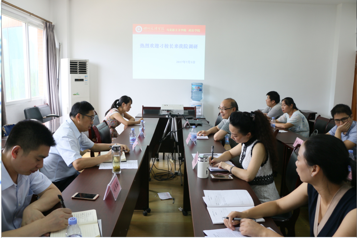 刁校长在学校党办副主任成华军和申搏官网党政领导陪同下,认真查看了学院宣传展板,走访了学院办公场所、图书资料室、教研室,详细了解了学院的办公条件。随后,在学院611会议室召开座谈会,听取工作汇报。