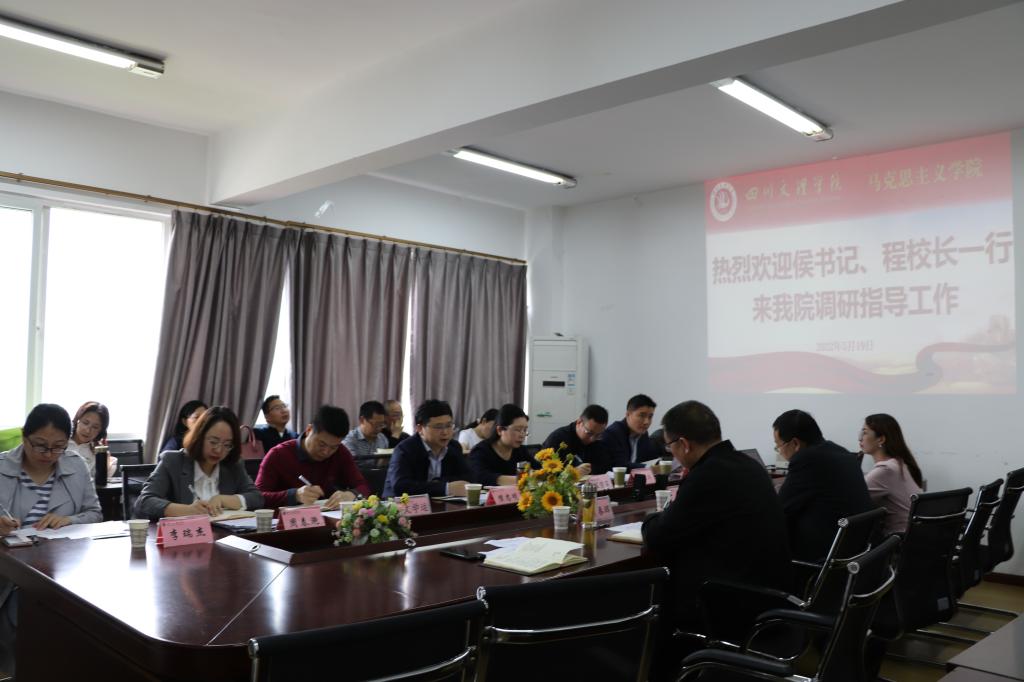 调研组一行在博文楼611会议室召开座谈会,会议由学校党委副书记侯忠明主持。首先,sunbet申搏官方网站院长孙杰教授从sunbet申搏官方网站基本情况、发展目标、发展思路、队伍建设、教学管理、思政课建设、科学研究、服务地方等方面以及学院建设中存在的问题进行了汇报。随后,党委宣传部副部长姜仕华同志组织所有与会人员一起学习和认真讨论了《四川文理学院关于高等学校思想政治理论课建设标准》。党总支书记刘春辉同志汇报了申搏官网拟定的《四川文理学院专职思政课教师岗位津贴发放管理办法》以及《四川文理学院专职思政课教师专项岗位津贴发放细则》政策依据、调研情况、主要内容等。