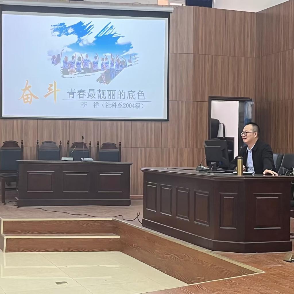 为进一步深入学习贯彻习近平总书记关于思政课建设的重要论述,牢牢把握思政课是立德树人关键课程的定位,善用“大思政课”,强化教师在办好思政课中的关键地位,不断推动思政课改革创新,11月18日,sunbet申搏官方网站举办《优秀校友思政大讲堂》系列讲座之二。讲座邀请申搏官网原社科系2004级思政专业优秀毕业生、达州职业技术学院现代农业学院院长,达州乡村振兴学院院长李祥副教授为申搏官网政法学院2022级思想政治教育专业学生讲了一堂既生动又具有启发意义的思政课。 sunbet申搏官方网站党政领导、部分思政教师及政法学院思想政治教育专业大一学生100余人参加。