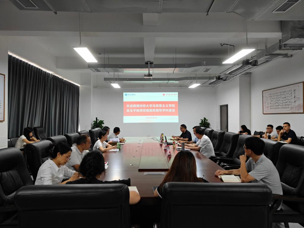 为深入推进马克思主义理论学科建设,提升思政课教学质量,应学院邀请,7月5日下午,西南财经大学sunbet申搏官方网站吴玉平教授莅临申搏官网指导学科建设并参加座谈会。座谈会由学院院长孙杰教授主持,sunbet申搏官方网站全体教师参加会议。