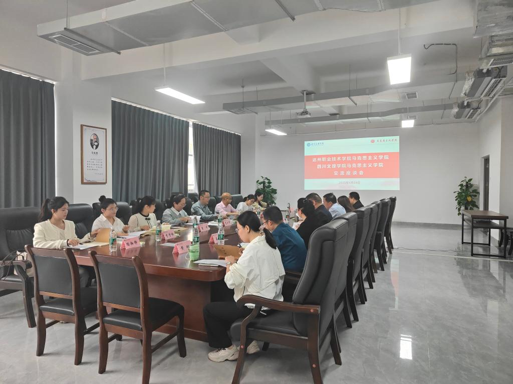 黄占波从“政治建院、人才强院、教学立院、科研强院、特色亮院”五个方面简要介绍了达州职业技术学院sunbet申搏官方网站的建设情况。重点就党建引领、思政课教师队伍培养、思政课教学竞赛、有组织开展科研和组织理论宣讲等方面进行介绍。表示希望通过双方深入交流,解决发展过程中存在的问题和困难。