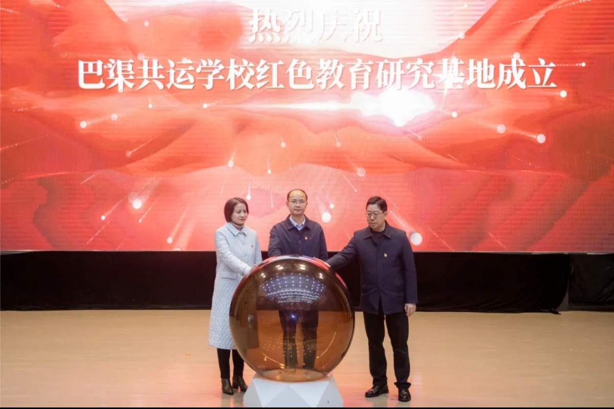 在热烈的掌声中,四川文理学院党委书记黄涛,市社科联党组书记、主席罗茜,市教育局党委委员、市教育局机关党委书记施明红,共同为“巴渠共运学校红色教育研究基地”揭牌,象征着一个集研究、教学、服务于一体的红色教育新平台正式启航。