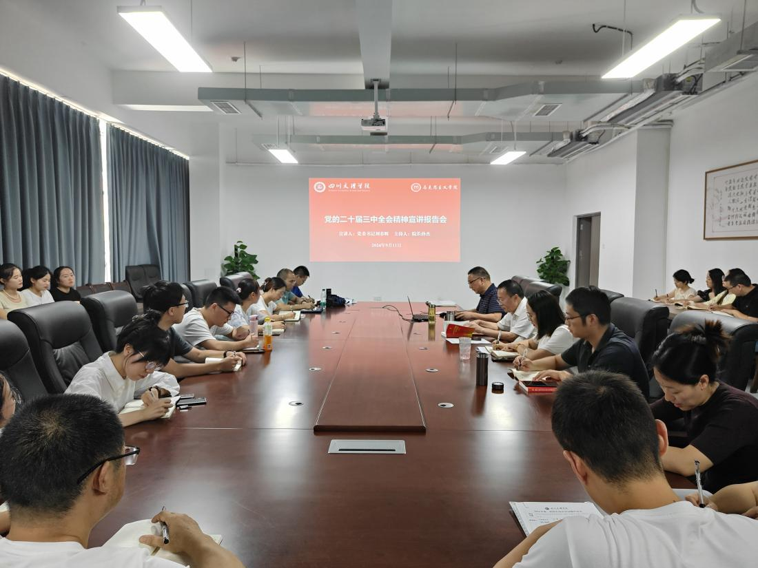 为深入学习贯彻党的二十届三中全会精神,推动全会精神深度融入思政课建设,9月11日,学院党委书记刘春辉为全体教职工作党的二十届三中全会精神宣讲报告,报告会由学院院长孙杰主持。