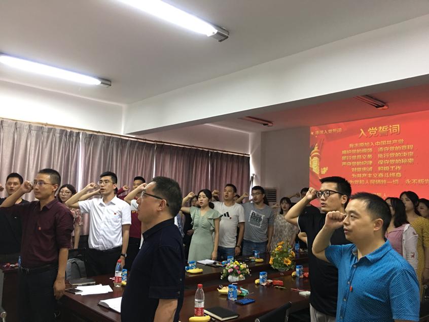 大会在庄严的入党宣誓词声中拉开帷幕,在吴辉兵副书记的领誓下,与会党员佩戴党员徽章,庄严地举起右手,面向党旗,共同重温入党誓词,表达了为共产主义事业奋斗终身的理想和信念。