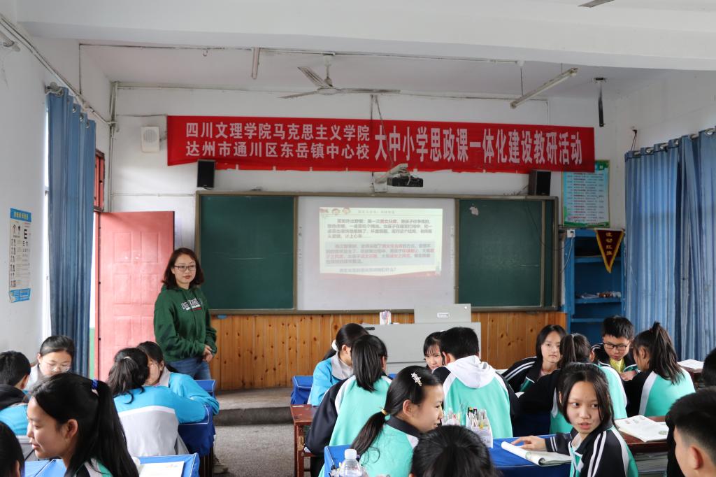 为深入学习习近平总书记关于教育的重要论述,贯彻落实党中央国务院《关于深化新时代学校思想政治理论课改革创新的若干意见》精神,深化新时代申搏官网思政课改革创新和思政课教师队伍建设,促进申搏官网思政课建设内涵式发展,切实落实立德树人根本任务,329日,党总支书记刘春辉、院长孙杰带队前往通川区东岳镇中心校开展大中小学思政课一体化建设教研活动,并在该校挂牌成立“四川文理学院sunbet申搏官方网站大中小学思政课一体化建设实践基地。”
