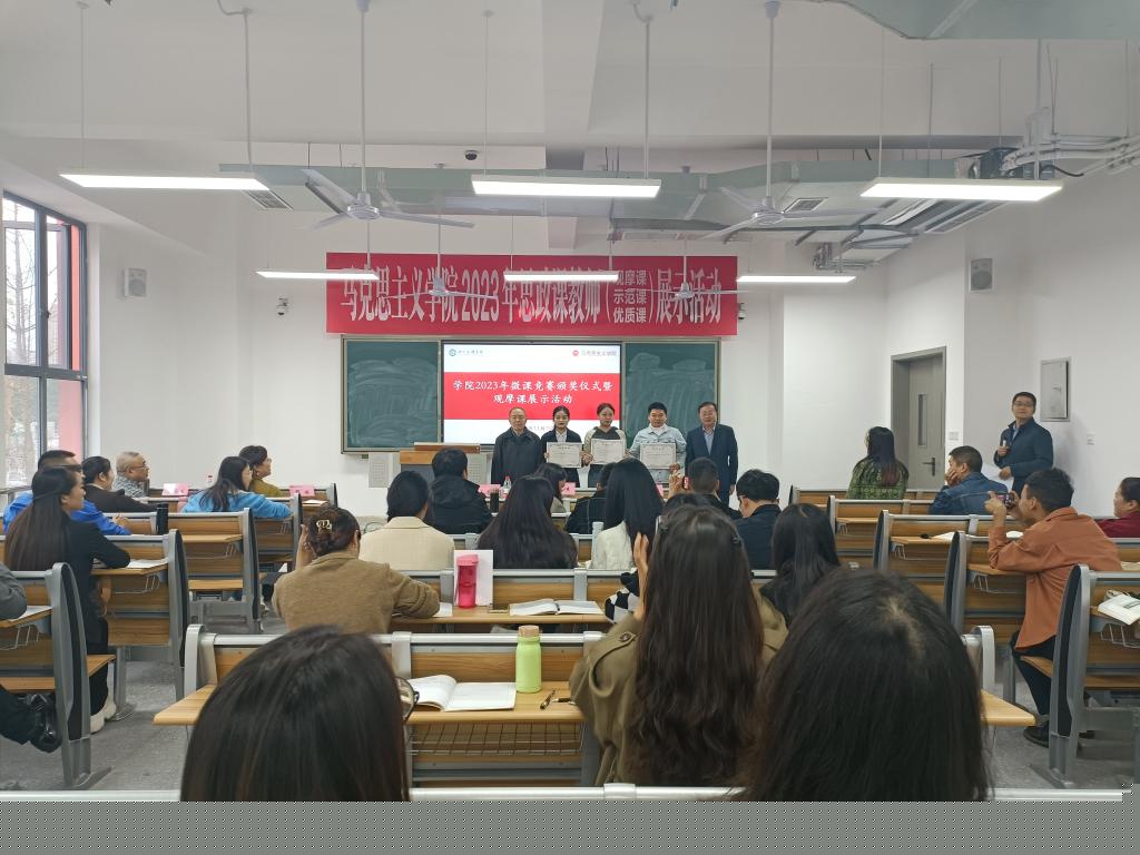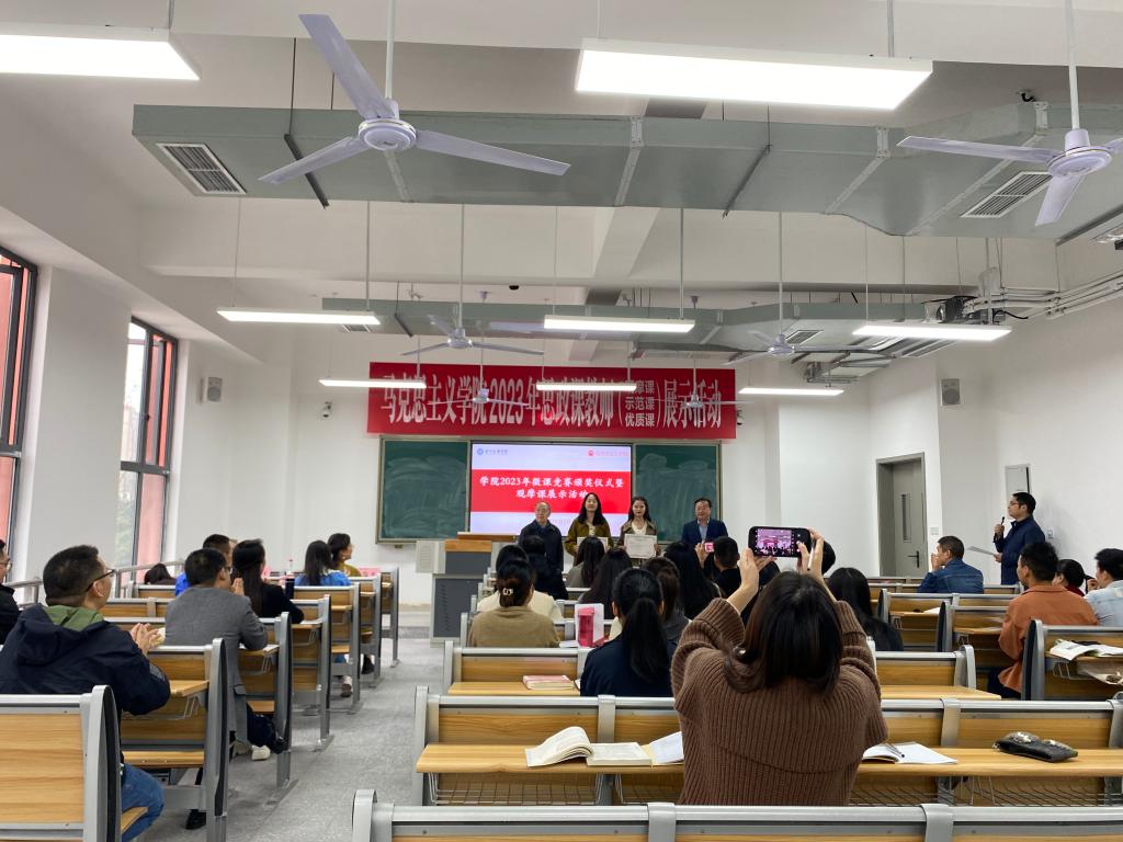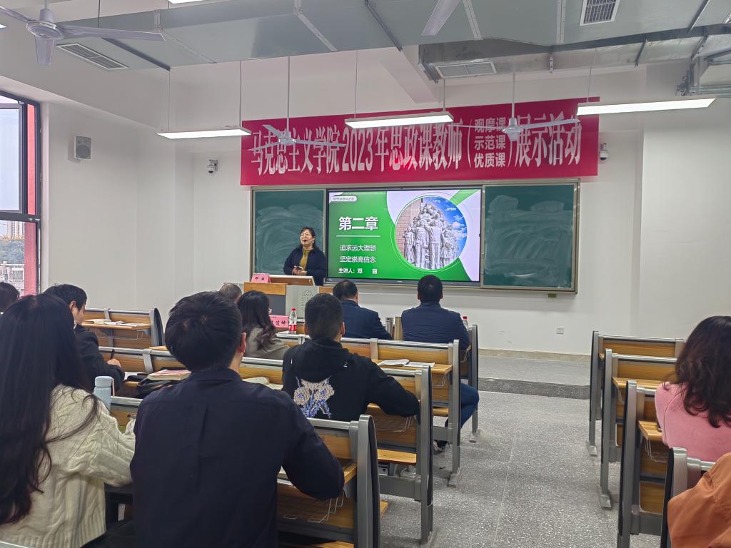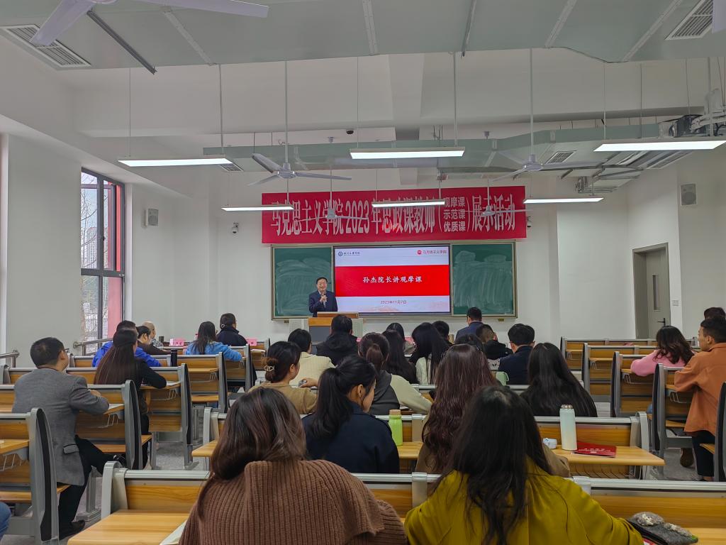 孙杰院长、汤海生副教授、邓丽老师分别以《完整、准确、全面贯彻新发展理念》、《领悟人生真谛,把握人生方向》、《追求远大理想,坚定崇高信念》为主题,进行了观摩课讲课和教学经验分享。周婷婷、王晴两位青年教师对三位老师授课作个人感悟分享,表示受益匪浅。