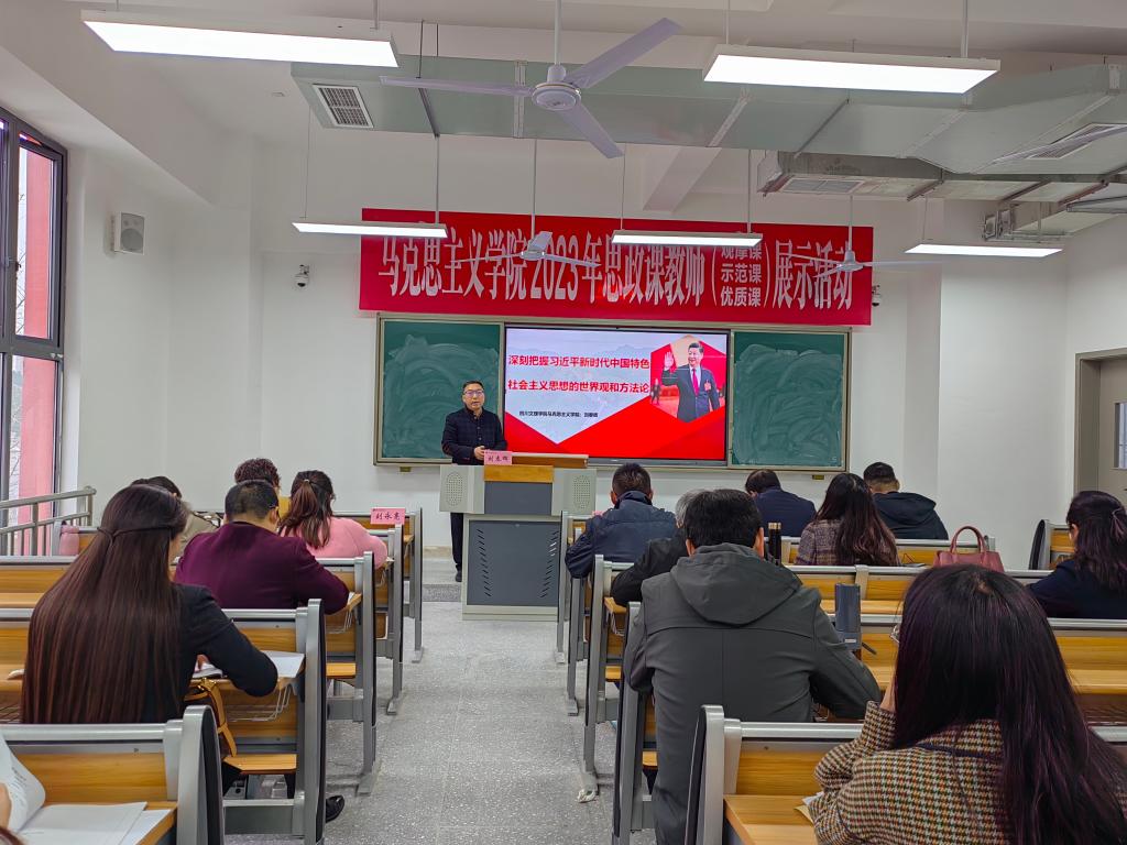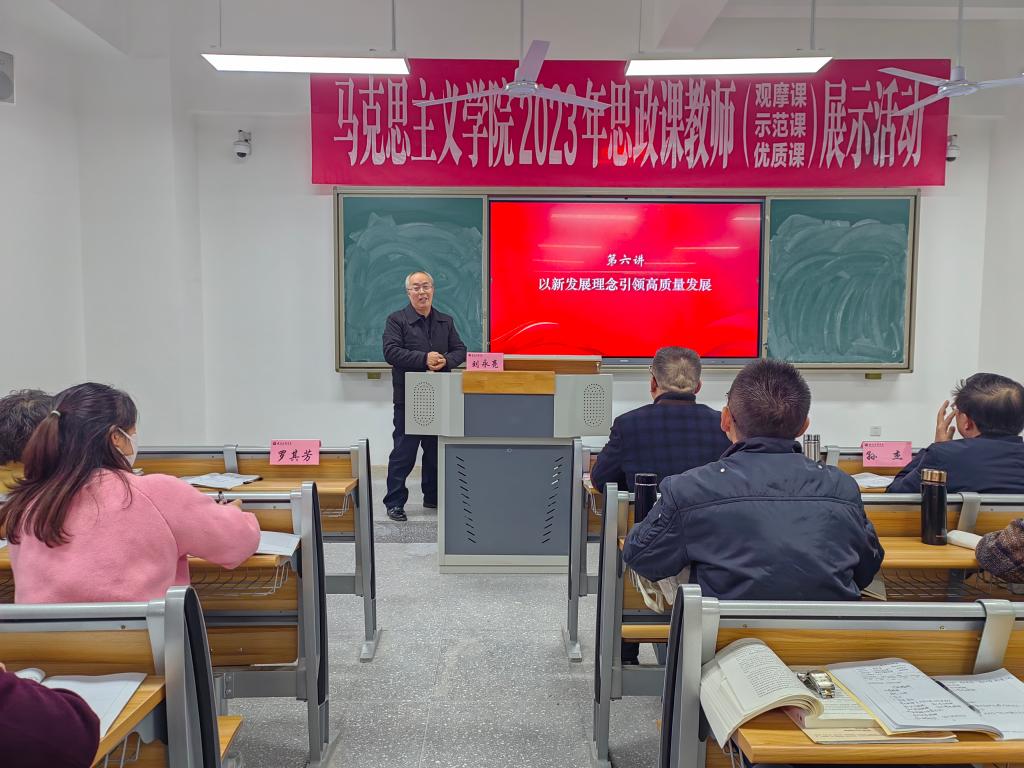 刘春辉书记、刘永亮老师、罗其芳老师分别以《深刻把握习近平新时代中国特色社会主义思想的世界观和方法论》、《继承优良传统,弘扬中国精神》、《以新发展理念引领高质量发展》为题,进行了观摩课讲课和教学经验分享。凌意湉、李兆东两位青年教师对三位老师授课作个人感悟分享。