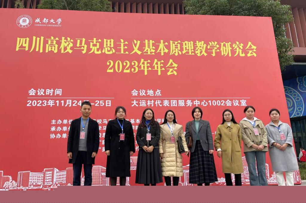 《马克思主义基本原理》课程年会于2023年11月25日在成都大学召开,四川文理学院sunbet申搏官方网站马克思主义基本原理教研室八位教师参加了此次会议。议程主要由教育部专家传达了中央和教育部关于进一步做好思政课教学工作的最新指示精神、川内兄弟院校教学改革探索经验分享和青年教师现场赛课三大板块构成。