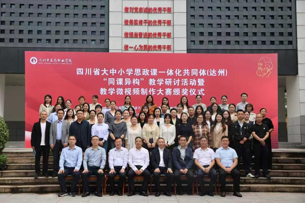 10月15日,由学校牵头四川省大中小学思政课一体化共同体(达州)组织开展“同课异构”教学研讨活动暨达州市大中小学思政课一体化建设教学微视频制作大赛颁奖活动在达州中医药职业学院举行。市委教育工委专职副书记、市教育局党委委员冯雷,达州中医药职业学院党委书记李壮成,四川文理学院sunbet申搏官方网站院长孙杰,达州中医药职业学院专职党委副书记舒心刚,达州中医药职业学院党委副书记、纪委书记李孟然等参加活动。