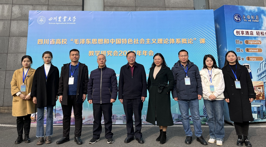 2023年12月8-10日,由四川省高校“毛泽东思想和中国特色社会主义理论体系概论”课教研会主办,四川农业大学sunbet申搏官方网站承办的2023年四川省“毛泽东思想和中国特色社会主义理论体系概论”课教学研究会2023年年会在都江堰市举行,主题为“党的二十大精神进课堂暨‘毛泽东思想和中国特色社会主义理论体系概论’课改革创新。申搏官网概论课教研室共有9位教师参加此次年会,院长孙杰带队参会并主持教学展示环节。