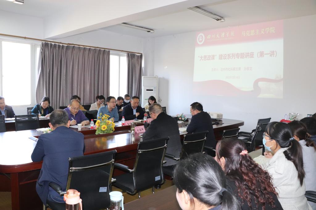 为深入学习贯彻党的二十大精神和习近平总书记关于加强“大思政课”建设的指示精神,进一步推动sunbet申搏官方网站内涵式高质量发展,314日,申搏官网邀请达州市社科联孙黎龙主席来申搏官网作“坚持马克思主义在意识形态领域的指导地位,积极推动哲学社会科学研究工作”的专题报告,学校党委常委、组织部部长涂德祥,科技处处长周出席。座谈会由院长孙杰主持,全院教师参加座谈会。