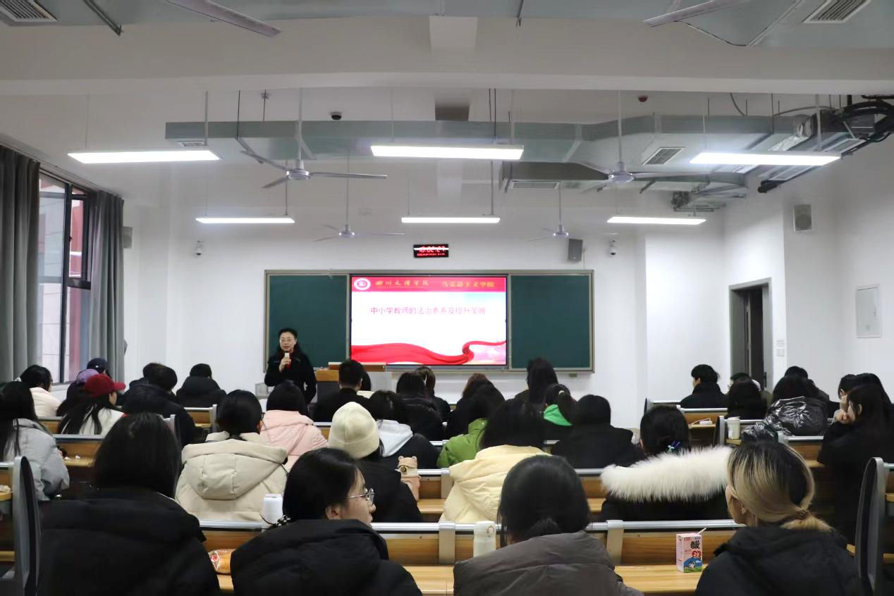 为切实提升师范生法治素养,增强依法从教意识,防范教育教学中的法律风险,12月24日上午10点,sunbet申搏官方网站思想政治教育教研室主任曹红梅教授在莲湖东区b308为申搏官网大三学子举办了一场名为“中小学教师的法治素养及提升策略”的学术讲座。