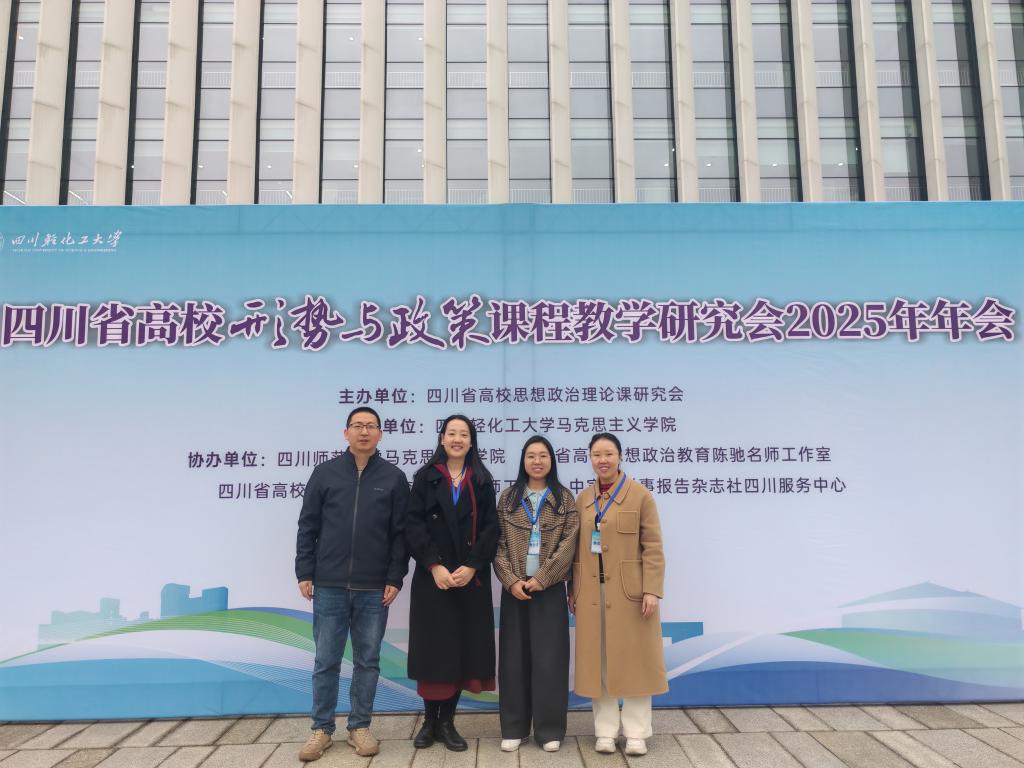 为深入学习贯彻党的二十届三中全会精神、习近平总书记关于学校思想政治工作和思政课建设的重要指示批示精神,牢牢把握教育的政治属性、人民属性、战略属性,守正创新推动全省思政课建设高质量发展,推动习近平新时代中国特色社会主义思想进教材、进课堂、进头脑。3月22日—23日,四川省高校“形势与政策”课程教学研究会2025年年会在四川轻化工大学举行。此次会议由四川省教育厅指导,四川省高校思想政治理论课研究会主办,四川轻化工大学sunbet申搏官方网站承办,四川师范大学sunbet申搏官方网站、四川省高校思想政治教育陈驰名师工作室、四川省高校思想政治教育唐晓勇名师工作室、中宣部时事报告杂志社四川服务中心协办。学院形势与政策教研室主任梁云,青年教师黄珊、丁玉洁、陈春莲参加会议。