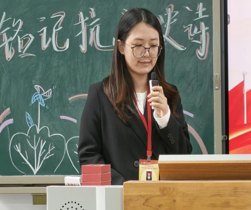 本次宣讲围绕铭记历史、传承精神、担当使命、践行号召四个方面展开,在“对话:精神传承,时代回响”篇章,姚玉涵聚焦抗战精神的当代价值,深入解读“爱国情怀、团结一心、不畏牺牲、坚韧不拔”四大核心内涵,通过历史与现实对照,从杨靖宇、赵一曼等抗战英雄到祁发宝、黄文秀等新时代楷模展现精神传承的力量,阐明抗战精神是永恒的民族基因,更是新时代青年的力量源泉。在“回首:烽火岁月,英雄不朽”篇章中,她以十四年抗战历程为主线,通过影像与史料相结合的方式生动讲述了从张自忠、杨靖宇到赵一曼、王二小等英雄事迹,让现场学子深刻感受到“不畏强暴、舍生取义、众志成城”的抗战英雄精神,不少同学为之动容。